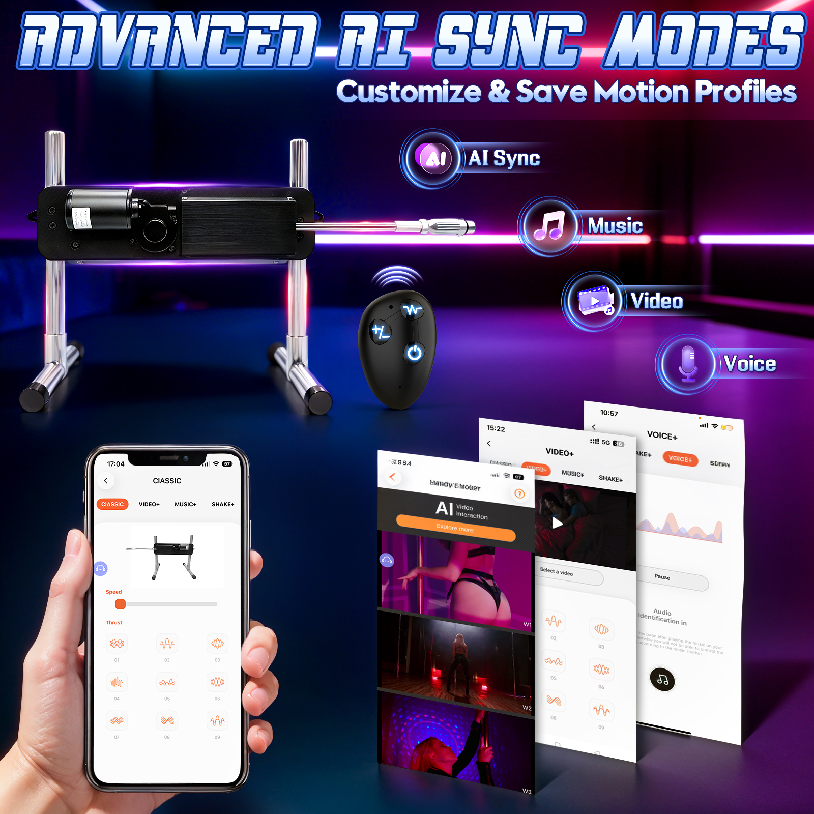 Explore various built-in modes, enjoy remote interaction with your partner, sync with AI videos, and discover endless possibilities.